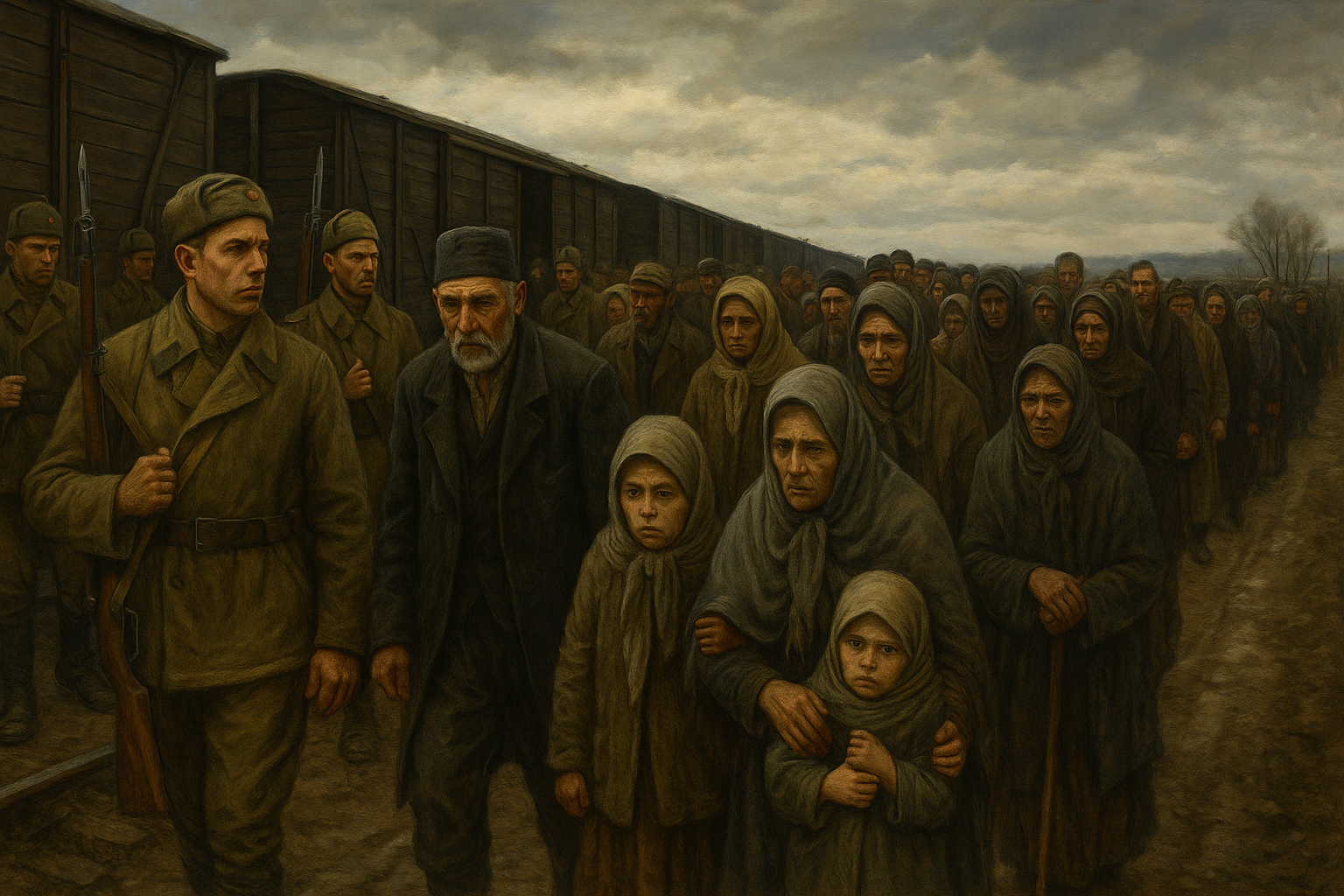 Fără avertisment, fără proces, fără posibilitate de apel, între 180.000 și 200.000 de persoane – bărbați, femei, copii și bătrâni – au fost smulse din casele lor și îmbarcate în trenuri de marfă. Nu li s-a spus unde merg, pentru cât timp sau de ce. Li s-a spus doar că au „15 minute să-și strângă lucrurile”. Mulți au murit înainte să urce în vagoane, de panică sau de rezistență.