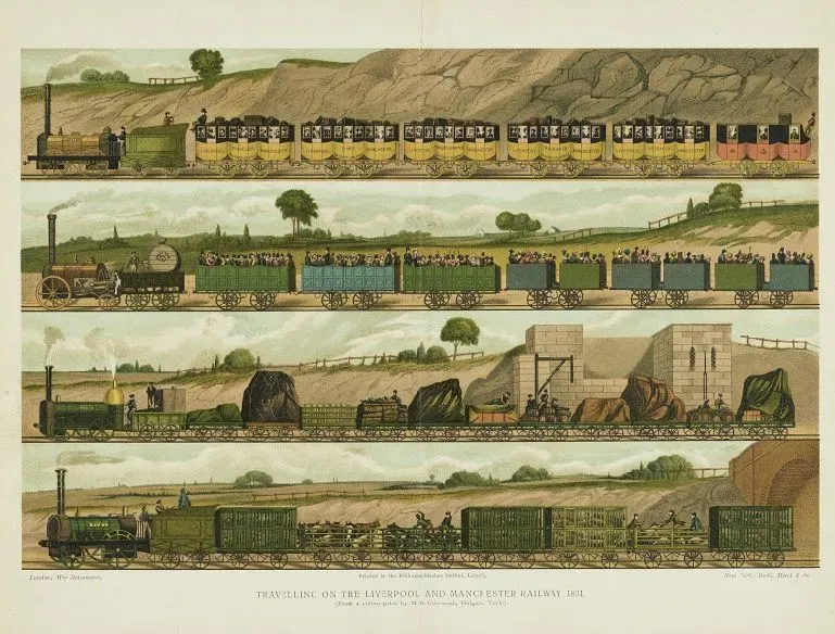 Petrache Poenaru nu a fost doar inventator, ci și un observator atent al progreselor tehnologice. Pe 27 octombrie 1831, a devenit primul român care a călătorit cu trenul, utilizând calea ferată Liverpool-Manchester—una dintre primele din lume. Într-o scrisoare, el a descris acest mijloc de transport ca fiind „una dintre minunile industriei secolului”, admirând puterea motoarelor cu aburi și eficiența vagoanelor conectate, care transportau sute de pasageri.