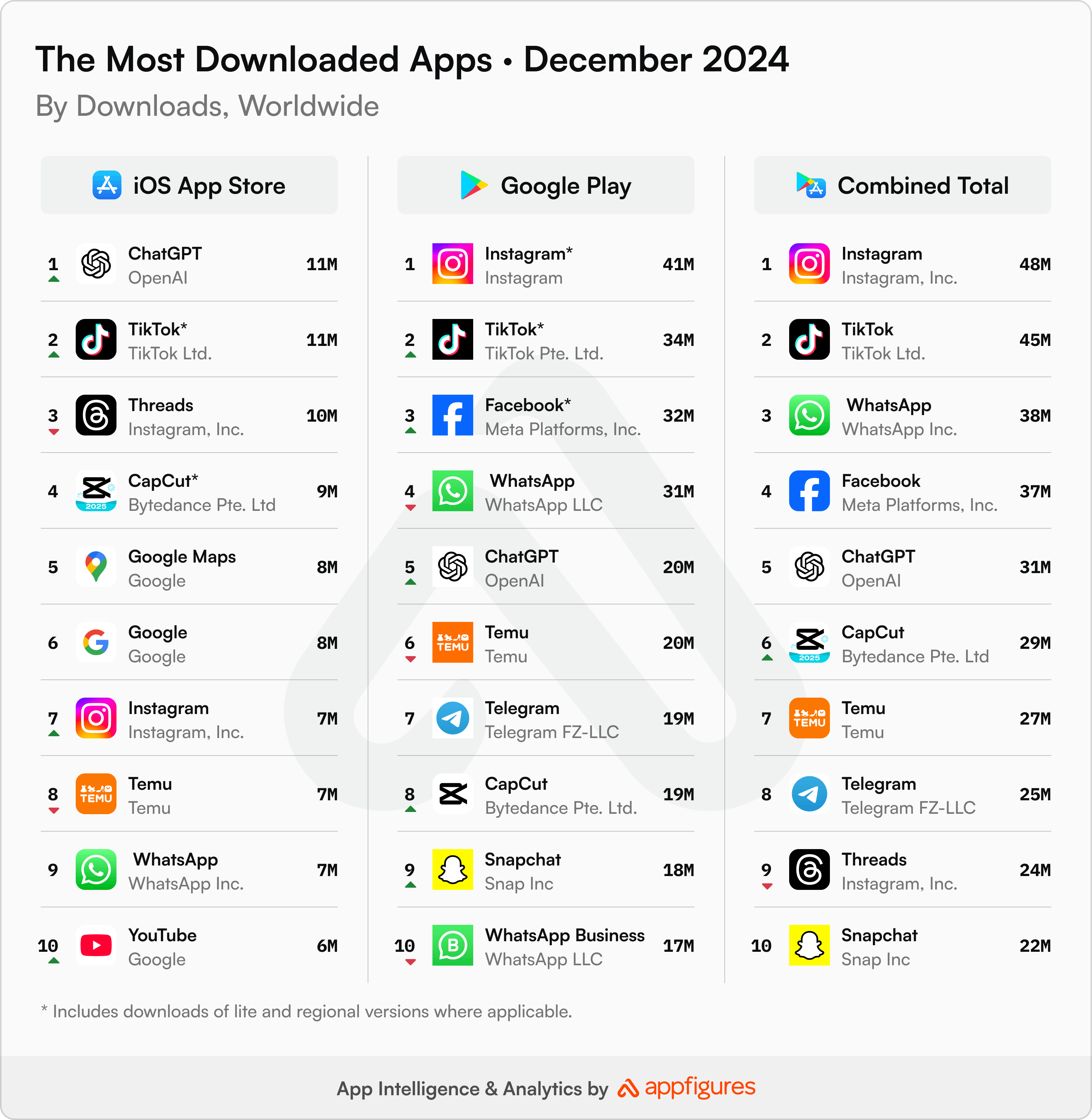 Date de descărcare: AppFigures – raport decembrie 2024