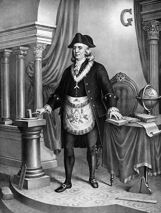 După ce a devenit francmason în Philadelphia în 1731, Benjamin Franklin a fost activ în cadrul fraternității timp de peste cincizeci de ani. A ocupat funcția de Mare Maestru al Pennsylvaniei în 1734 și de Mare Maestru Provincial al Pennsylvaniei în 1749.