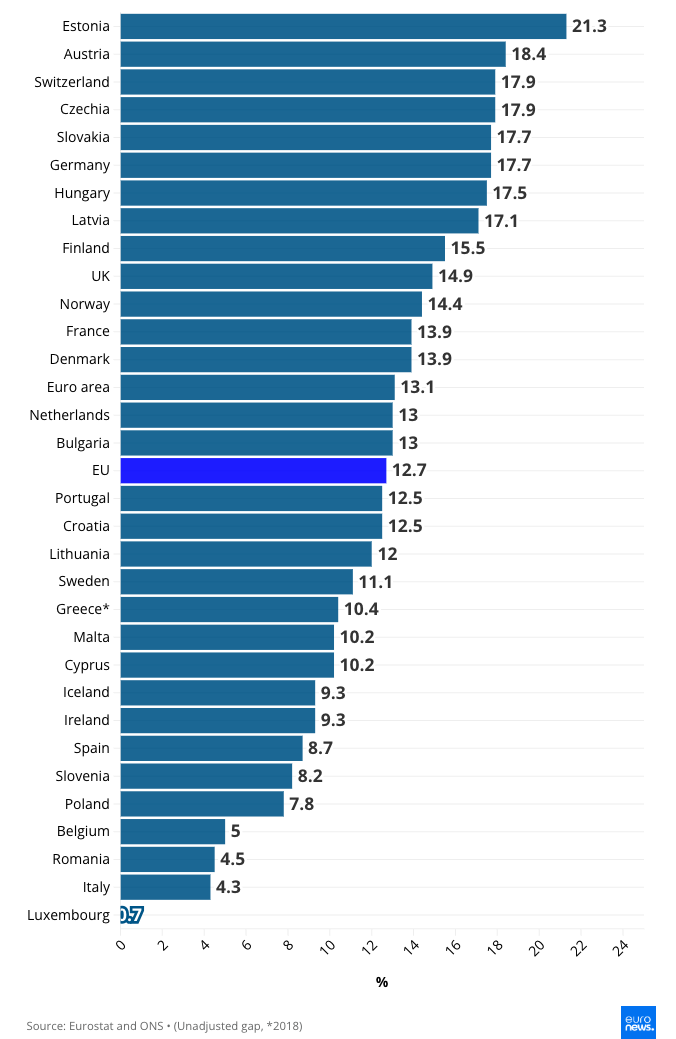Luxembourg se remarcă drept singura țară europeană unde femeile câștigă mai mult decât bărbații, dar astfel de exemple sunt rare și insuficiente pentru a echilibra tabloul general al inegalităților de gen.