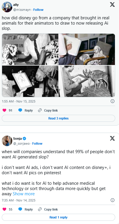 Pentru unii analiști, reacția la declarațiile lui Iger era previzibilă. Într-o industrie în care animatori, desenatori, scenariști și compozitori au avertizat constant asupra riscului „pierderii identității artistice”, introducerea conținutului generat de utilizatori pe una dintre cele mai mari platforme din lume este percepută ca o accelerare a unei transformări care deja provoacă tensiuni serioase.