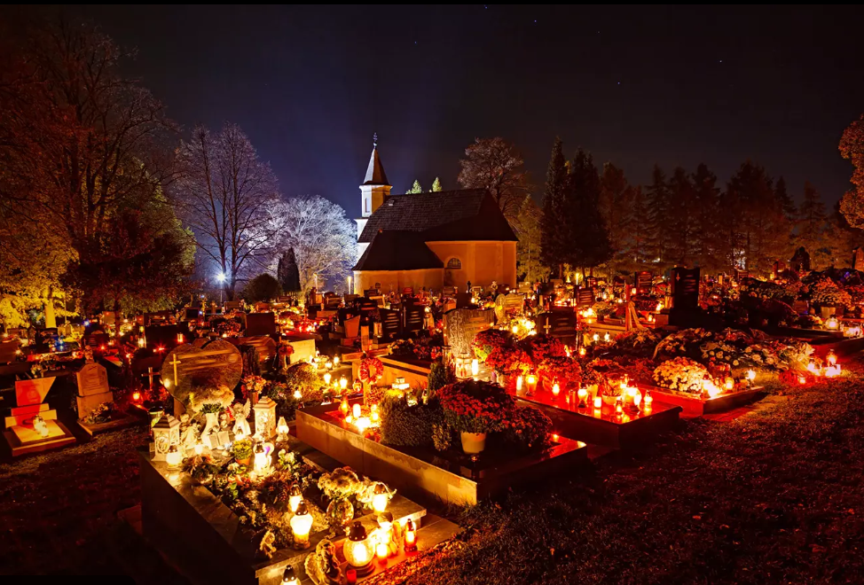 În capitala catalană, Barcelona, Halloweenul coabitează cu tradiția locală La Castanyada, unde se mănâncă castane coapte și panellets. Școlile încurajează copiii să îmbine tradițiile, iar antropologii vorbesc despre „hibridizare culturală”. În Polonia, cimitirele devin adevărate mări de lumini, într-un ritual solemn. În Portugalia, copiii cer nuci și castane. În Ungaria, familiile vizitează mormintele celor dragi și aprind lumânări, transformând cimitirele în spații de tăcere și reflecție. În Croația, se pun farfurii suplimentare pe masă.
