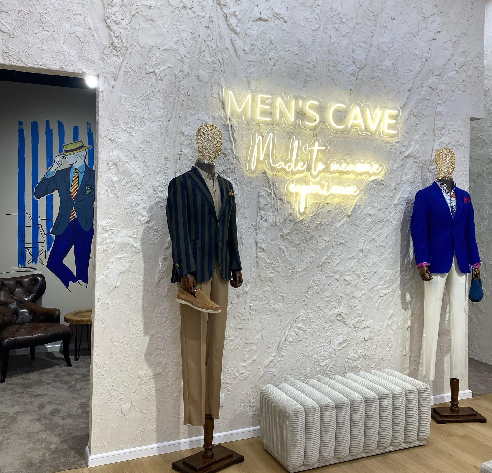 „Există costume… și există Men’s Cave”, se aude în Promenada Mall. Iar diferența se simte de la primii pași.