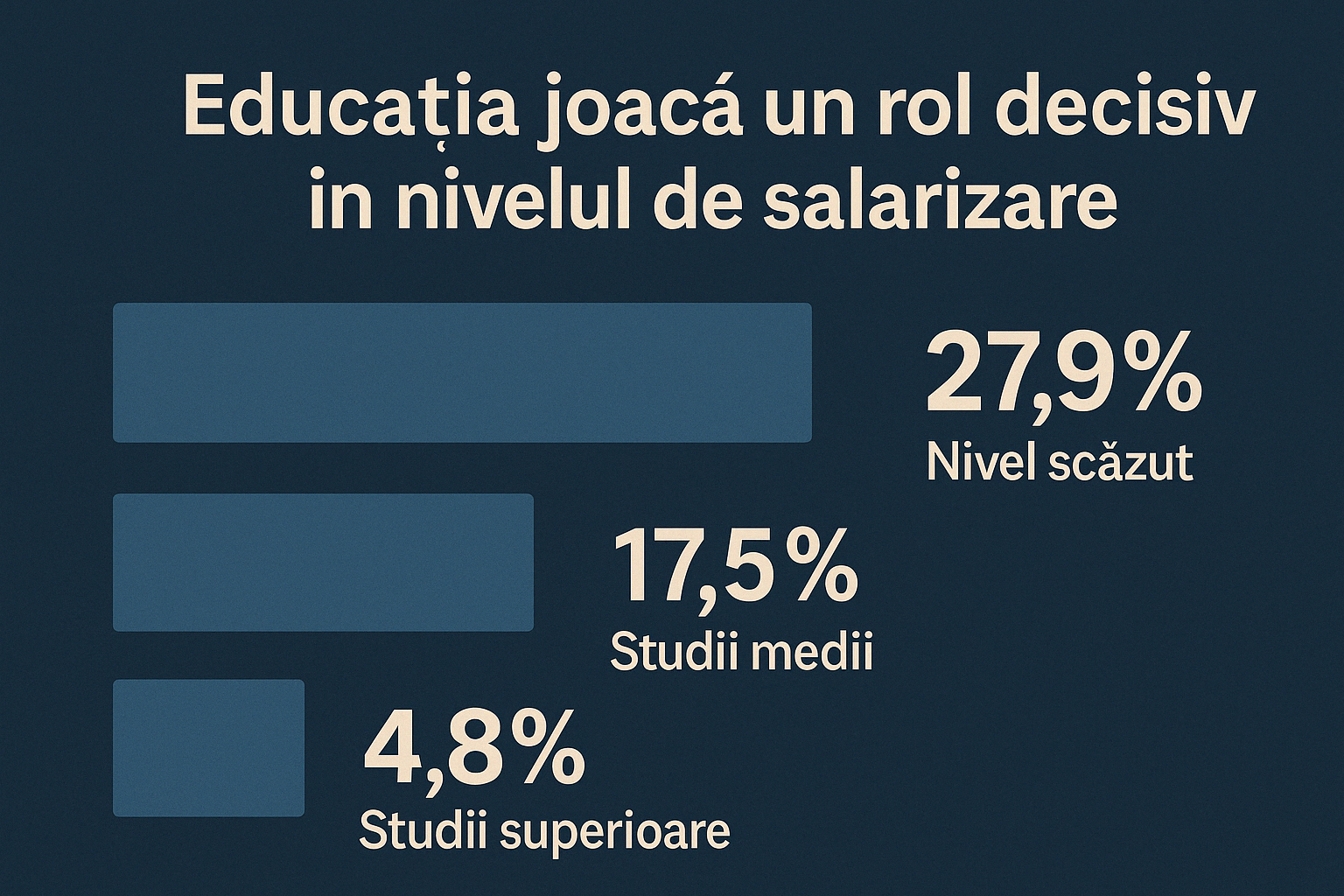 Educația joacă un rol decisiv în nivelul de salarizare. Aproape 28% dintre persoanele cu un nivel scăzut de educație ajung să lucreze pe salarii mici, în timp ce doar 17,5% dintre cei cu studii medii și doar 4,8% dintre cei cu studii superioare se regăsesc în această categorie. Diferențele reflectă clar legătura directă dintre nivelul de pregătire și șansele de a obține un venit decent în Uniunea Europeană.