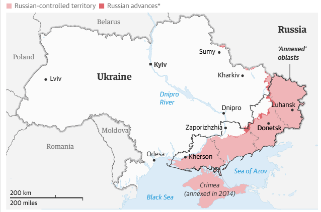 Documentul prevede ca Ucraina să recunoască oficial anexarea Crimeei și controlul rusesc asupra întregului Donbas, iar frontul din Herson și Zaporijia să fie înghețat exact unde se află astăzi. Nu se cere nicio retragere rusă din teritoriile ocupate — situația de pe câmpul de luptă ar fi pur și simplu legalizată.