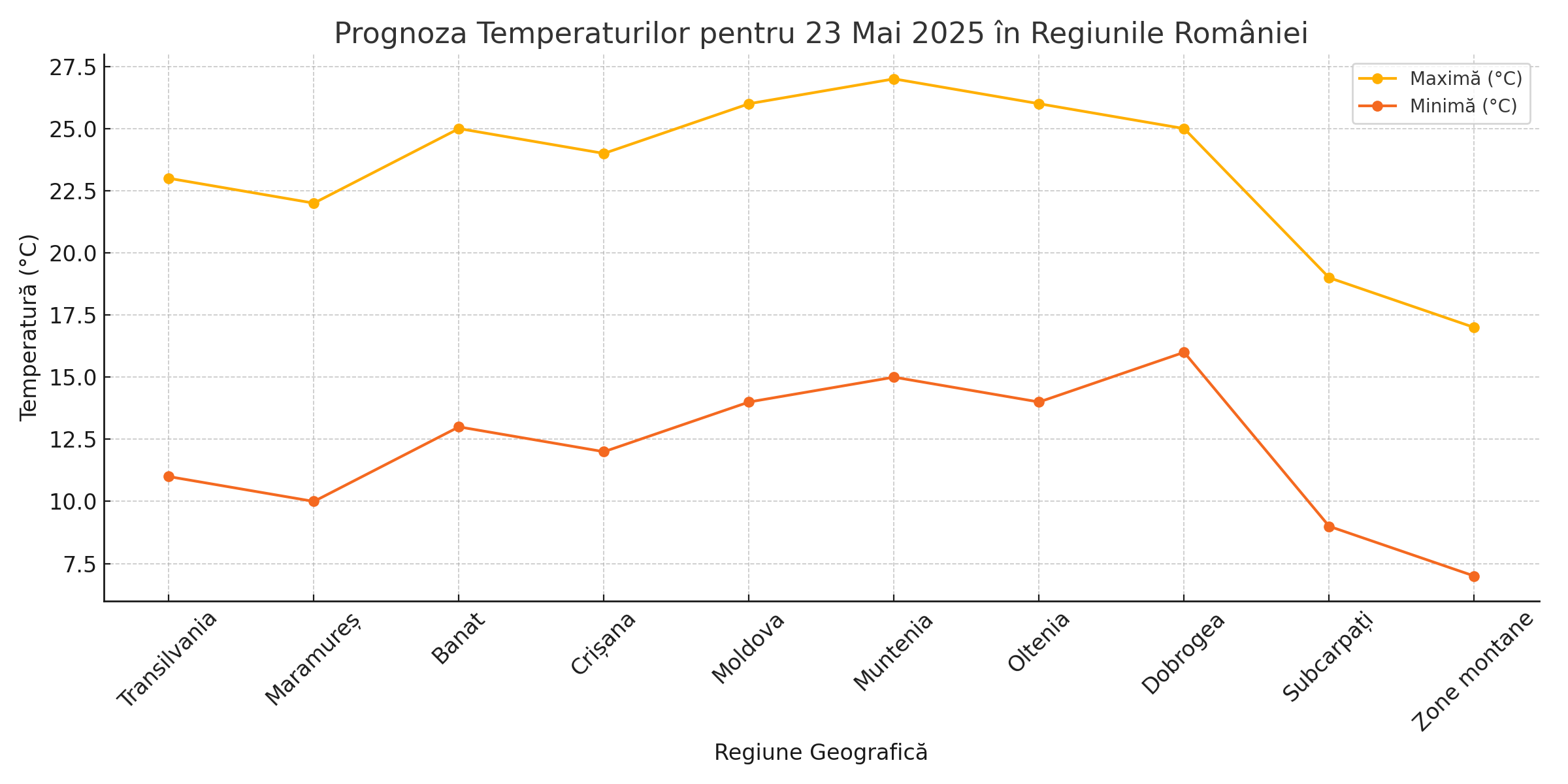 - Temperaturi: Maxime între 23–27°C, minime între 12–15°C.