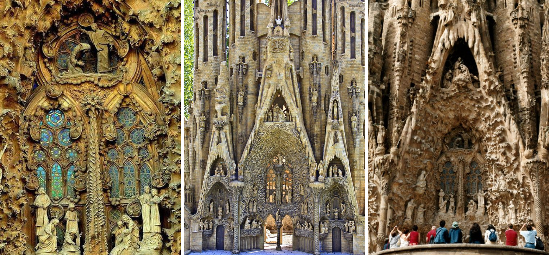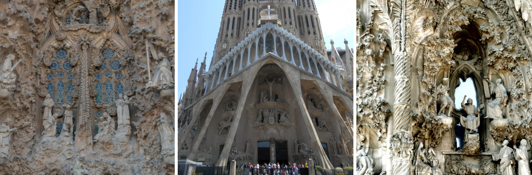 Întreaga catedrală a fost concepută ca un omagiu adus credinței catolice, iar fiecare detaliu imaginat de Gaudí poartă un simbol divin. Celelalte trei fațade sunt flancate de câte patru turnuri dedicate apostolilor, ridicând numărul final la 12, asemenea martorilor fondatori ai creștinismului. Deasupra se înalță un turn central dedicat lui Iisus Hristos, proiectat la aproape 170 de metri, înconjurat de patru turnuri mai mici pentru evangheliști, iar peste absidă se ridică un alt turn dedicat Fecioarei Maria. În ansamblu, arhitectul a imaginat o teologie în piatră, construită pe verticală, în care credința urcă progresiv spre lumină.