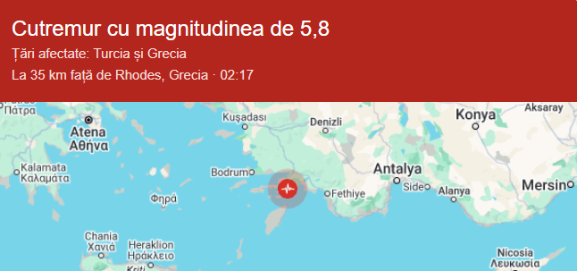Un cutremur produs în timpul nopții a zguduit sud-vestul Turciei, fiind resimțit până în insula grecească Rodos. Seismul a provocat panică în rândul localnicilor, soldându-se cu zeci de răniți și un deces tragic.